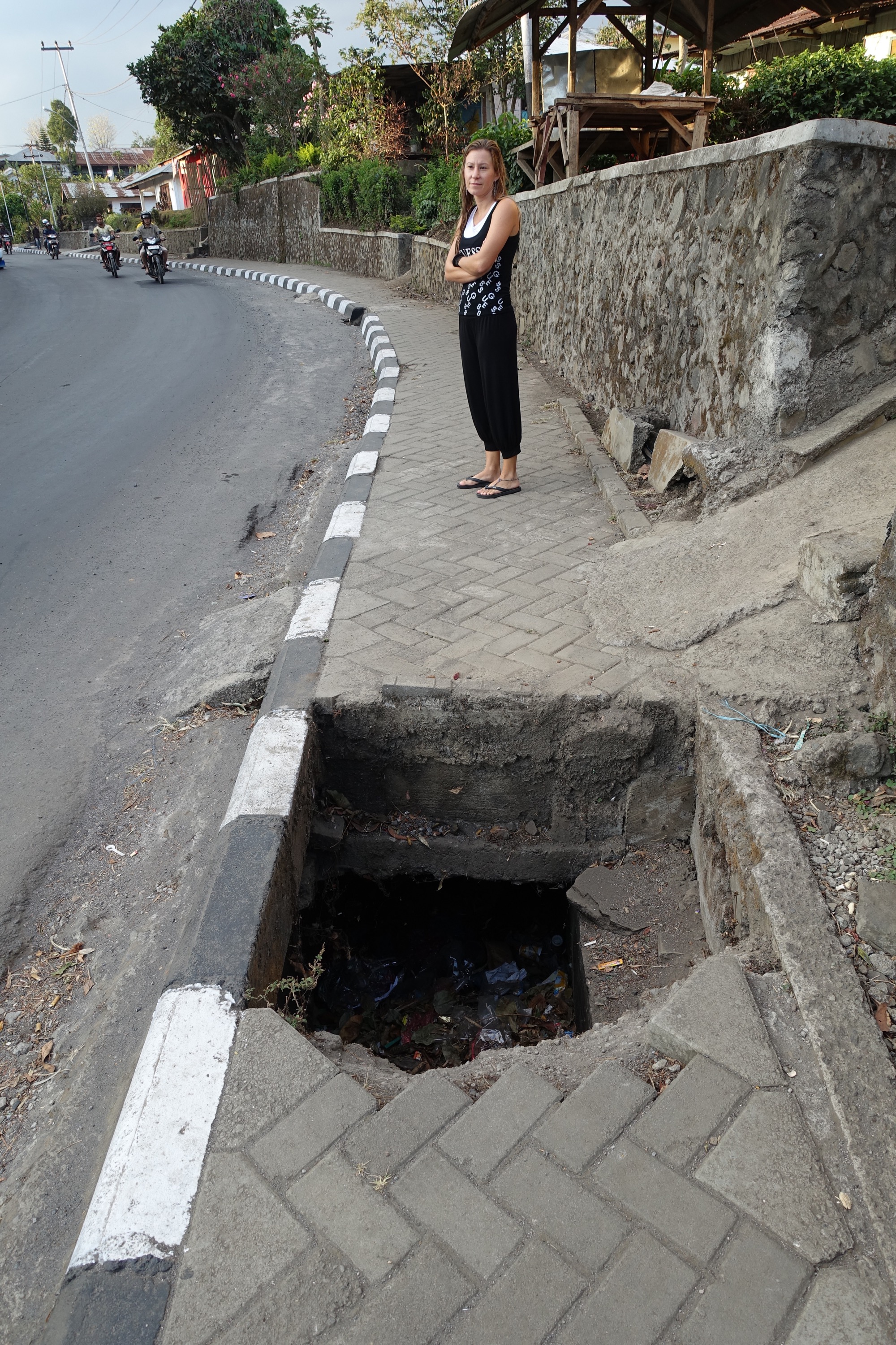 Nächster Stopp war dann Bajawa, wiederum mehr oder weniger in den Bergen gelegen und dadurch von den Temperaturen her auch erträglicher. Auf dem Weg dorthin machten wir noch halt bei den heißen Quellen, schönes warmes Wasser, allerdings würde sich ein Besuch am Abend vielleicht eher anbieten, also wenn die Temperaturen draußen nach unten gehen und das warme Wasser noch schöner ist. Außer diesen Quellen haben wir dort nichts gemacht, das Dorf Bena haben wir bewusst ausgelassen, ganz einfach weil wir von der ganzen rumzieherei genug hatten. Die Straße von Riung in Richtung Baja war dann definitiv auch die Krönung in Sachen eng und mit schlaglöchern übersät.