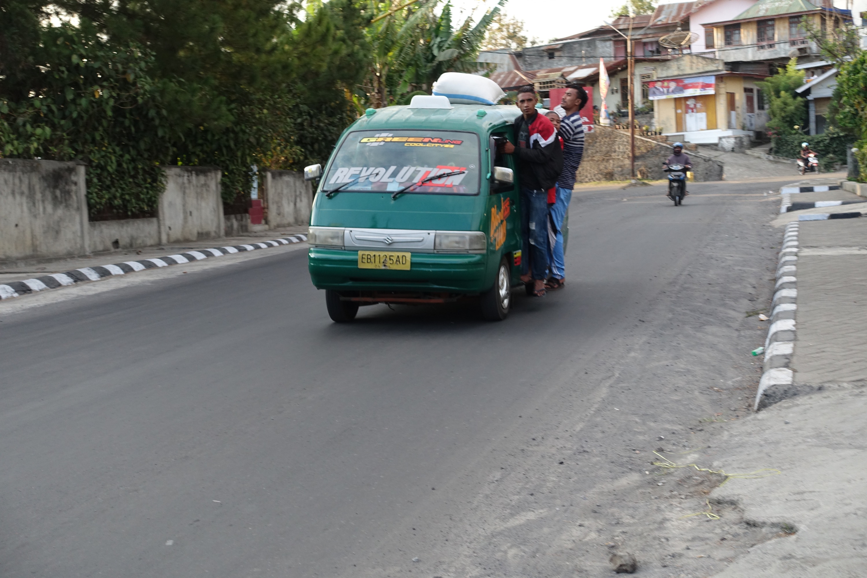 Ursprünglicher Anstoß für diese Reise waren die Kraterseen am Kelimutu und nach einigen Recherchen auch noch die „17 Islands“ in bzw. vor Riung. Die zwei Tage in Maumere hatten wir zum eingewöhnen und entspannen nach der Ankunft eingelegt was sich auch als gute Entscheidung herausstellte. Zur Fortbewegung hatten wir für die gesamte Tour einen Faherer samt Minivan organisiert, eine Verbindung mit Bussen besteht auch… Aber was soll man sagen: es handelt sich hierbei eher um überfüllte fahrbare Diskotheken, preislich sicher unschlagbar und wenn die Kiste wirklich zu voll ist, kann man auch immernoch auf dem Dach oder so mitfahren!