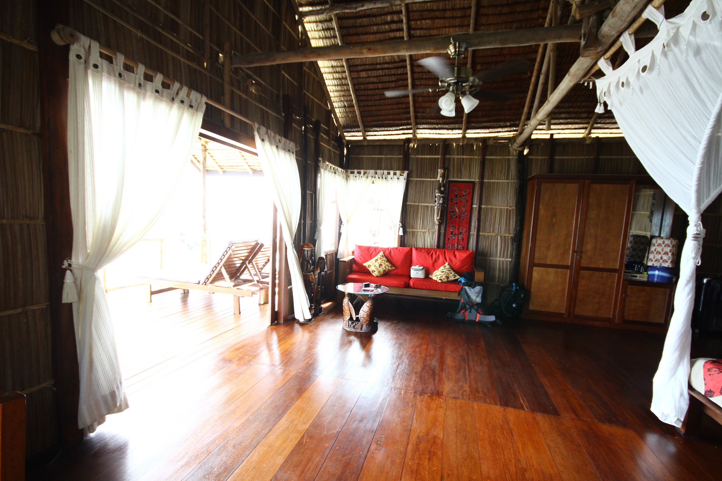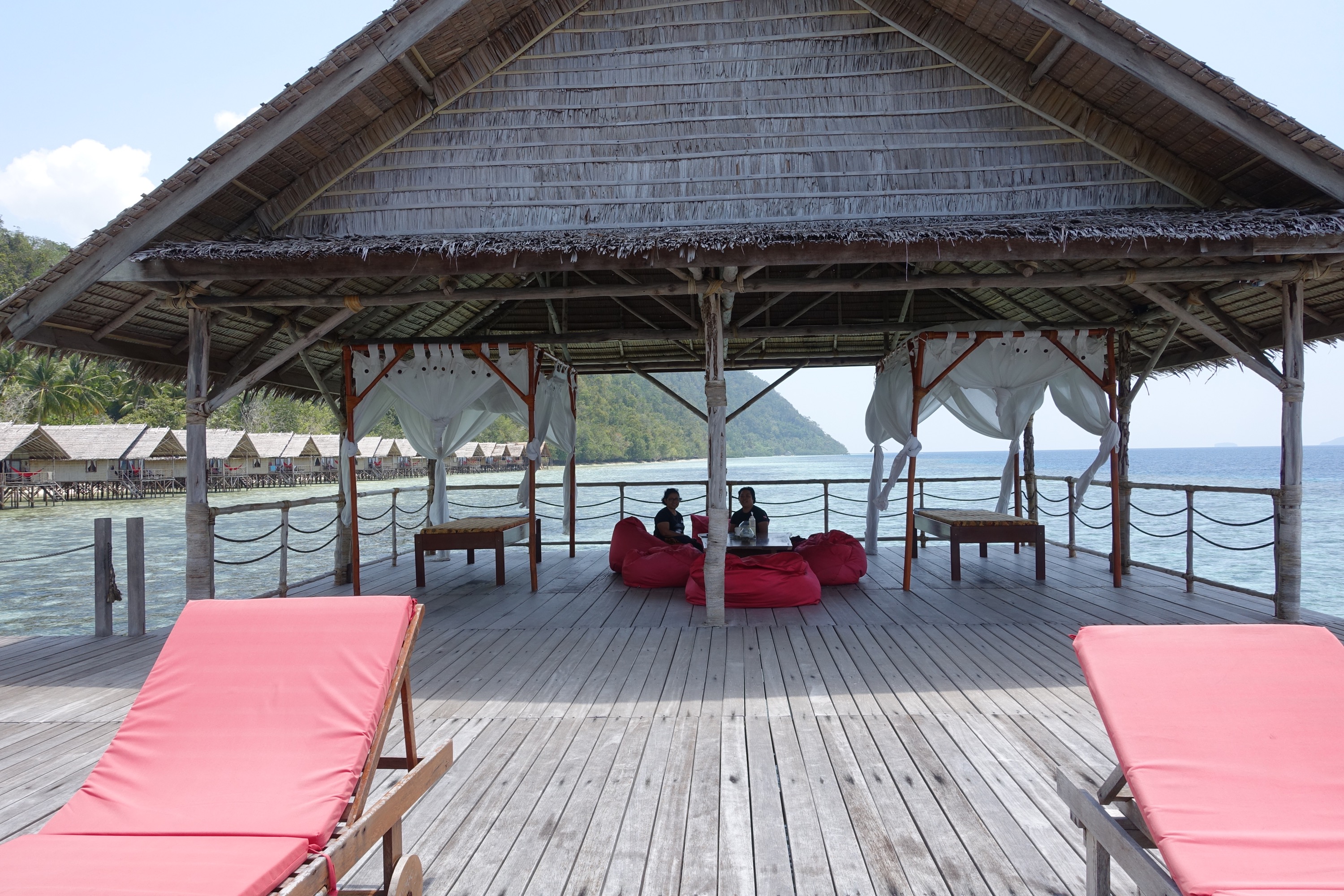Registrierung und der erste Überblick über das Resort wurden dann im sehr schönen Restaurant gegeben, mit einer frischen Kokosnuss in der Hand und einem kalten Handtuch zur Erfrischung, war das ankommen hier schon wesentlich entspannter als sonst so üblich. Alles in allem fühlt man sich hier wirklich sehr gut aufgehoben, es ist alles sehr sauber, entspannt und im Grunde wird einem jeder Wunsch von den Augen abgelesen… So Money does matter! Gelegen über dem Wasser, toll eingerichtet und mit einer steten Priese ausgerüstet wohnen wir für die nächste Woche in einem der schönsten Tauch und Schnorchelgebiete der Welt. Bisher soweit wir sehen konnten mehr oder weniger frei von Müll findet sich hier auch wieder eine wunderbare Unterwasserwelt. Nach zwei Ausflügen heute Vormittag haben wir jetzt erstmal beschlossen für morgen einen faulen Tag einzulegen und die Seele ein bisschen baumeln zu lassen… Im Bunalow… In der Hängematte oder dem Pier… Ein Hundeleben ist das!