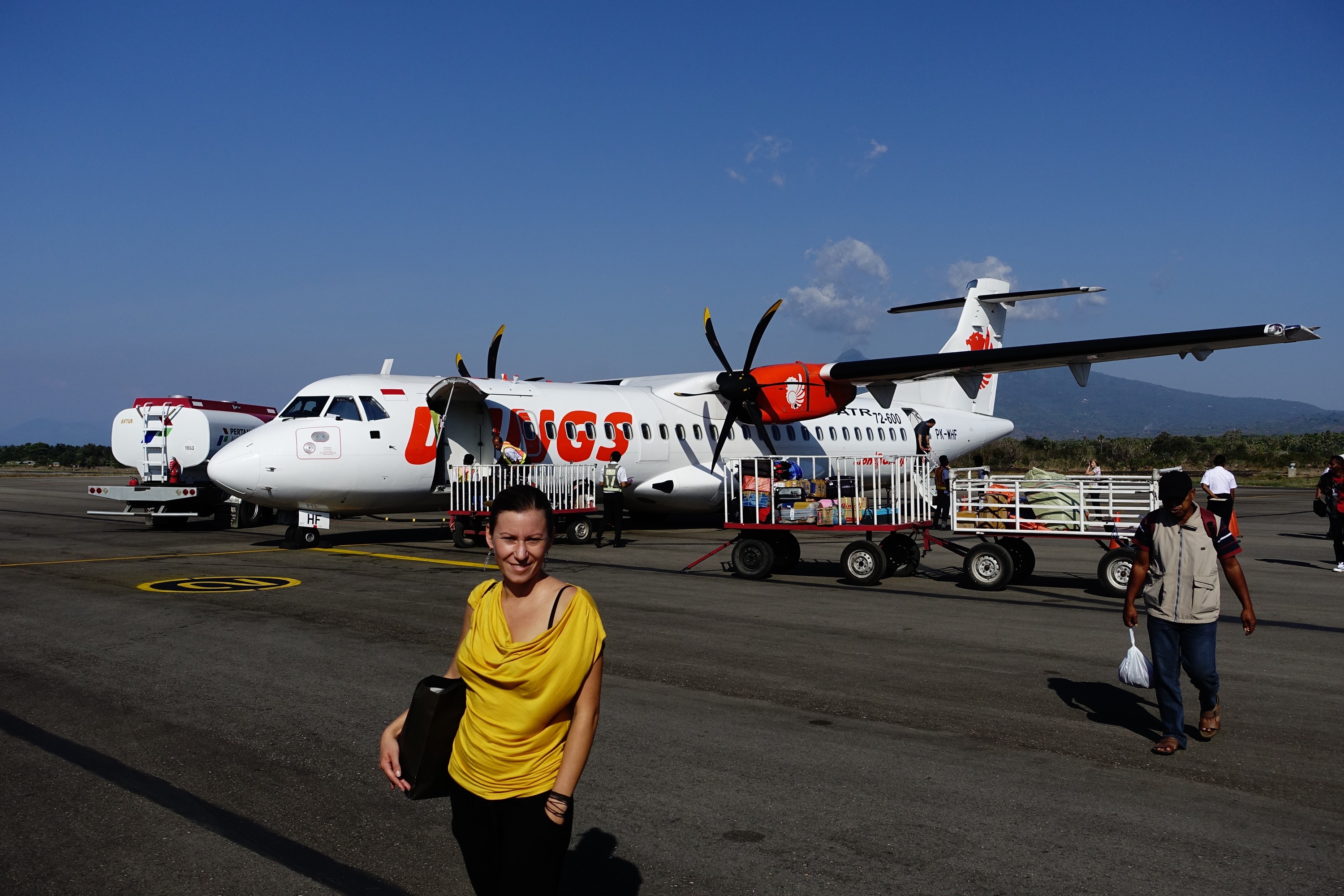 Pünktlich um 3.45 Uhr morgens verrichtete unser Wecker gestern sein unheilvolles Werk und läutete somit im wahrsten Sinne des Wortes das Ende unserer Zeit in Thailand ein. Wie erwartet lief soweit alles vom Check out im Hotel, über die Fahrt zum Flughafen (dieses Mal sogar mit Taxi-Meter) bis hin zum Check in am Flughafen dank „Red Carpet Service“ ziemlich problemlos und vor allem schnell ab. Der erste Abschnitt unser Flugreise verlief dann auch ohne nennenswerte Zwischenfälle überpünktlich aber dafür recht unbequem mit Air Asia von Bangkok nach Denpasar auf Bali. Dort angekommen gings dann schon mal gar nicht so schlecht weiter, Immigration im Rekordtempo, dafür warten am Gepäckband und dann im Schweinsgallopp quer durch das ganze Flughafengelände zum Nationalen Flughafenabschnitt. Dort haben wir den erneuten Check in nach einigem hin und her, Zahlung für Übergepäck weil wir den Koffer aufgrund eines verstellten Zahlenschlosses nicht wie geplant noch erleichtern konnten (Problem bei den Rimowa koffern ist scheinbar bekannt, wenn diese vom Zoll mit dem TSA Schlüssel geöffnet werden, kann sich unter Umständen der Code verstellen…. Sehr praktisch!) quasi wirklich in der letzten Minute geschafft und konnten dann dank der bereits in der Flugbuchung einkalkulierten Verspätung der Lion Air noch mit an Bord der recht kleinen Maschine gehen. Wie schon bei unserem letzten Indonesien Besuch stellten wir auch dieses Mal wieder fest, dass es hier weitaus nicht so genau geht wie bei uns, man wird nach draußen aufs Vorfeld geschickt, wo dann neben jedem Flugzeug ein Männchen mit einem Zettel in der Hand steht welcher anzeigt wo es denn gerade hingehen soll- und dann steigt man halt da ein wo man hin möchte (eine weitere Kontrolle findet hier nicht mehr wirklich statt)…
